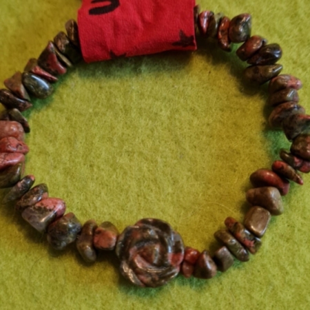• Unakiit – lihvitud tsipsid ja helmes – käevõru – Roos