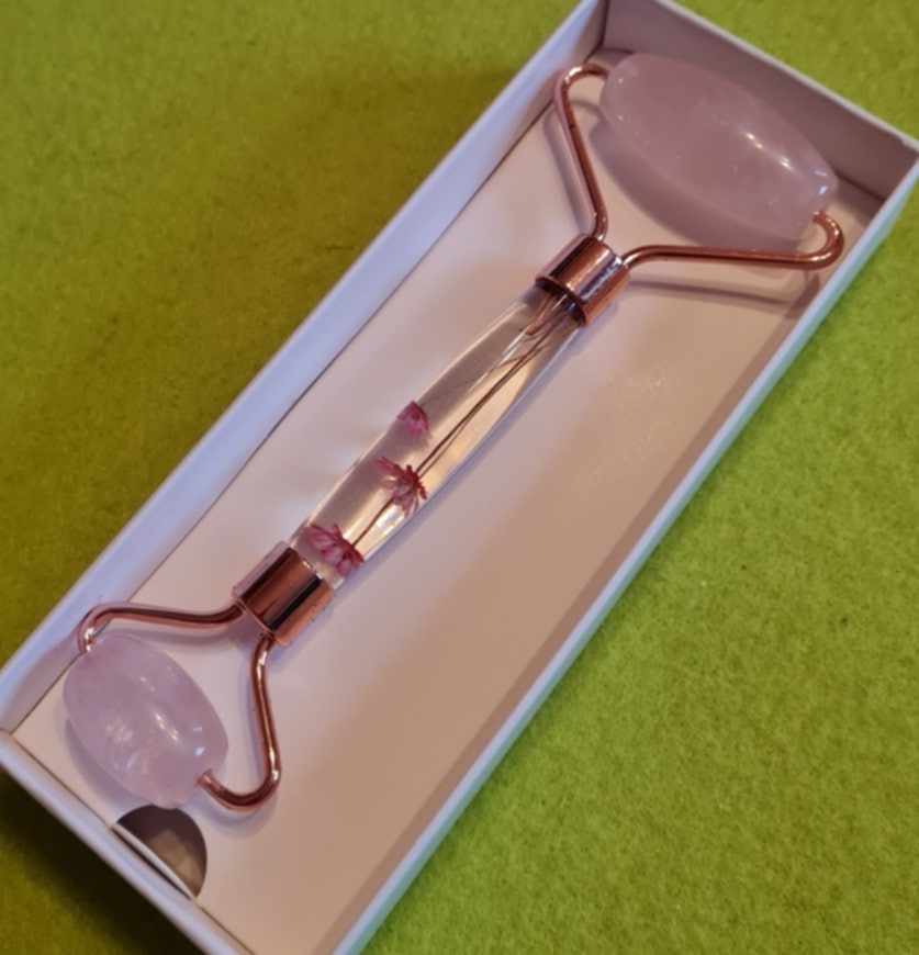• Roosa kvarts – massaažirullik – roosad lilled – UUS
