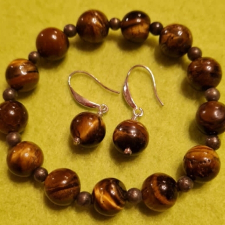 • Tiigrisilm – kuldne tiigrisilm – komplekt – helmestest käevõru ja kõrvarõngad – LÕPUMÜÜK