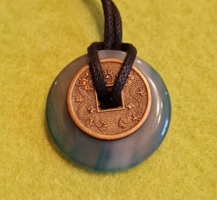 Kaunis naturaalsest poolvääriskivist ahhaat ripats – taevaketas, kõrgus ca 3 cm + Hiina õnnemünt