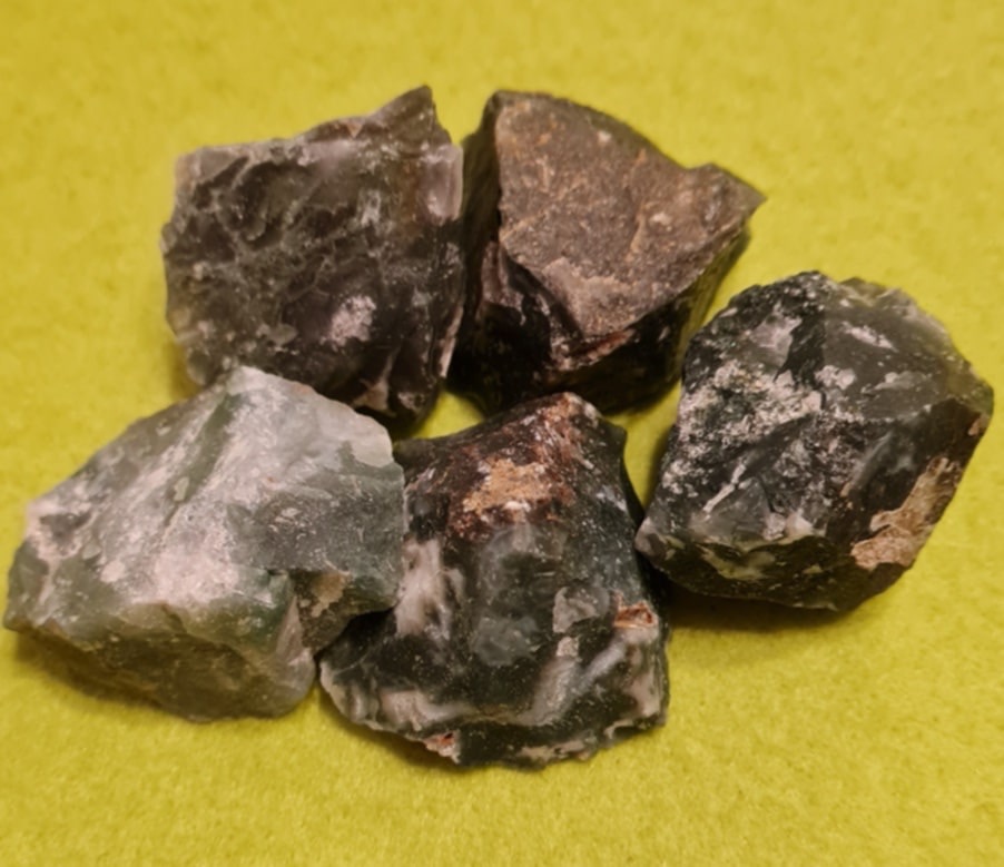 Naturaalne töötlemata ahhaat – roheline sammalahhaat – murtud suurest kivist.