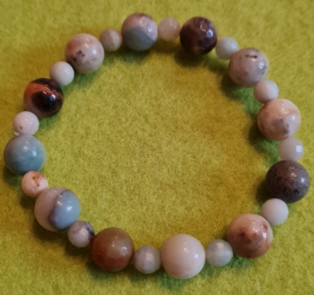 Naturaalsest poolvääriskivist amasoniit käevõru, veniv, lihvitud helmed –