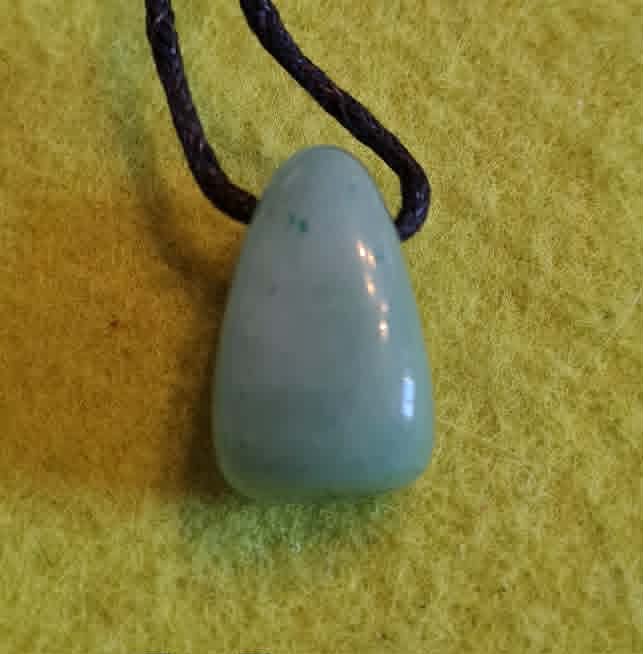 Trummellihvitud poolvääriskivist roheline aventuriin ripats, pikkus ca 2,4 cm.