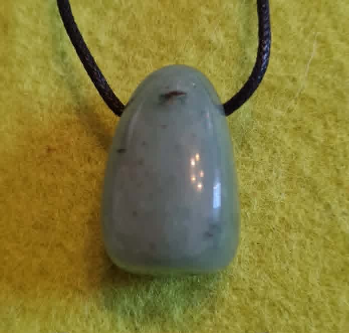 Trummellihvitud poolvääriskivist roheline aventuriin ripats, pikkus ca 2,8 cm.