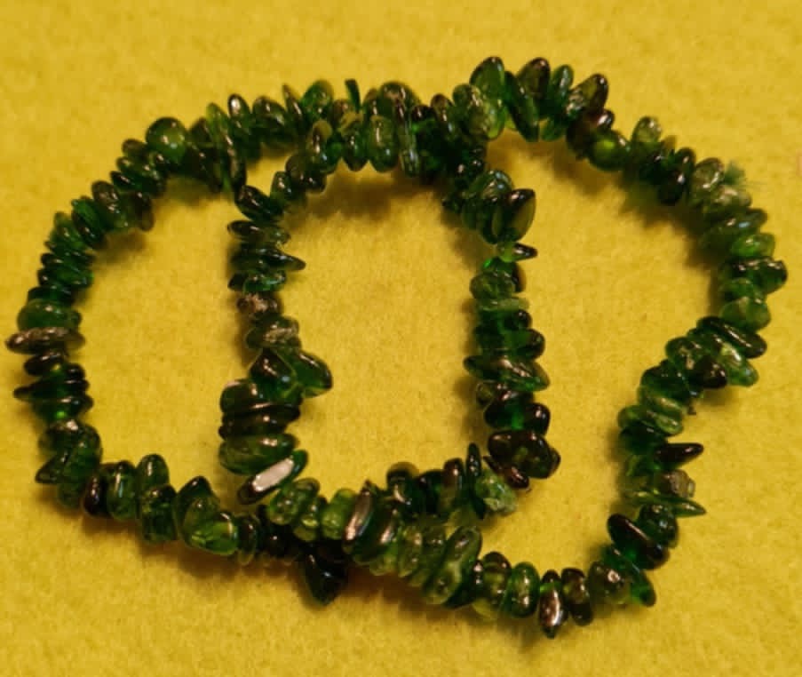 Naturaalne poolvääriskivi diopsiid – lihvitud tsipsidest käevõru.