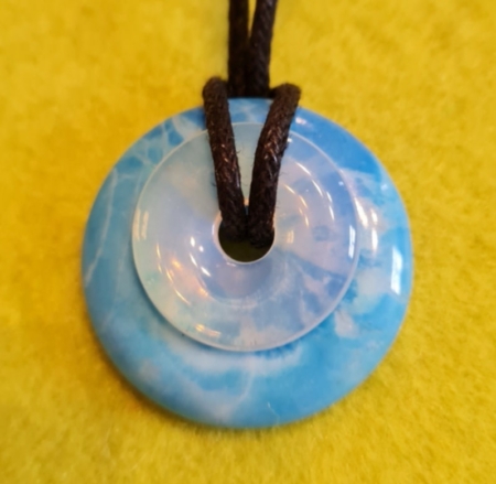 Erinevatest poolvääriskividest ripats – taevakettad ca 3 ja 2 cm. Vahanöör.