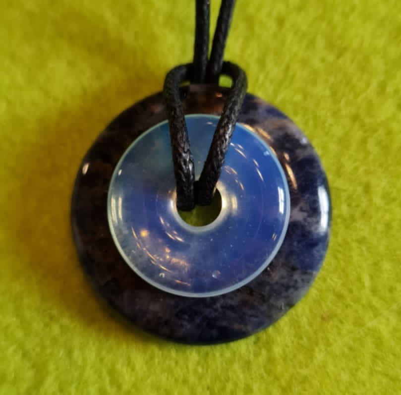 Erinevatest poolvääriskividest ripats – taevakettad ca 3 ja 2 cm. Vahanöör.