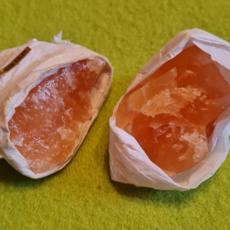 Oranž kaltsiit – ümarad lihvitud helmed ca 0,8 ja 1,5×2 cm
