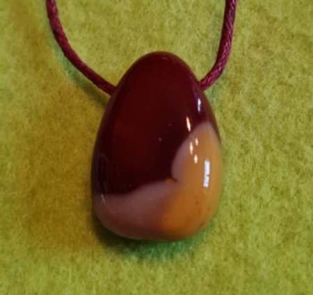 Naturaalsest poolvääriskivist (mookaite-jaspis) ripats, kaasas vahanöör 1 m.