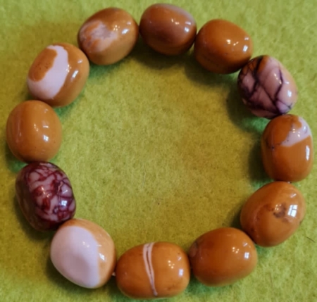 Naturaalsest poolvääriskivi – mookaite jaspis – veniv lihvitud kividest käevõru.