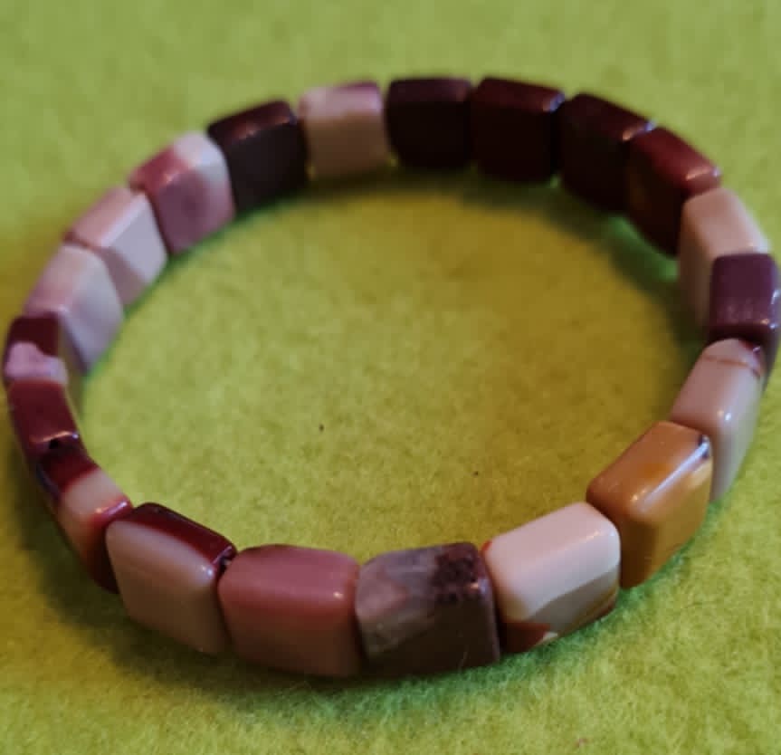 Naturaalsest poolvääriskivi – mookaite jaspis – veniv helmestest käevõru.