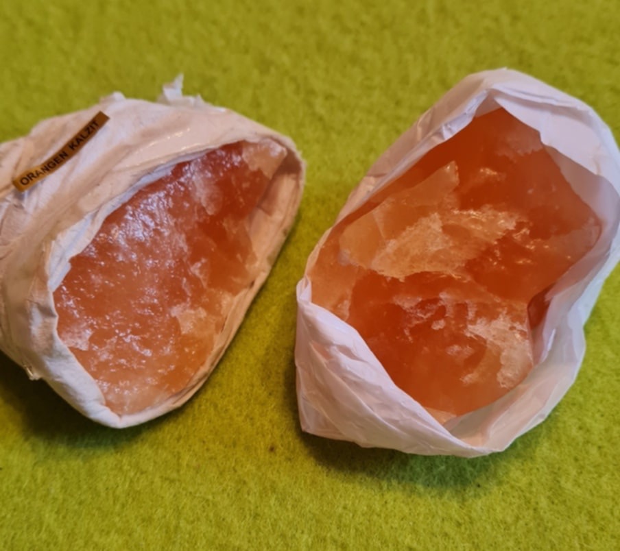 Naturaalne töötlemata tükk naturaalset poolvääriskivi – oranž kaltsiit.