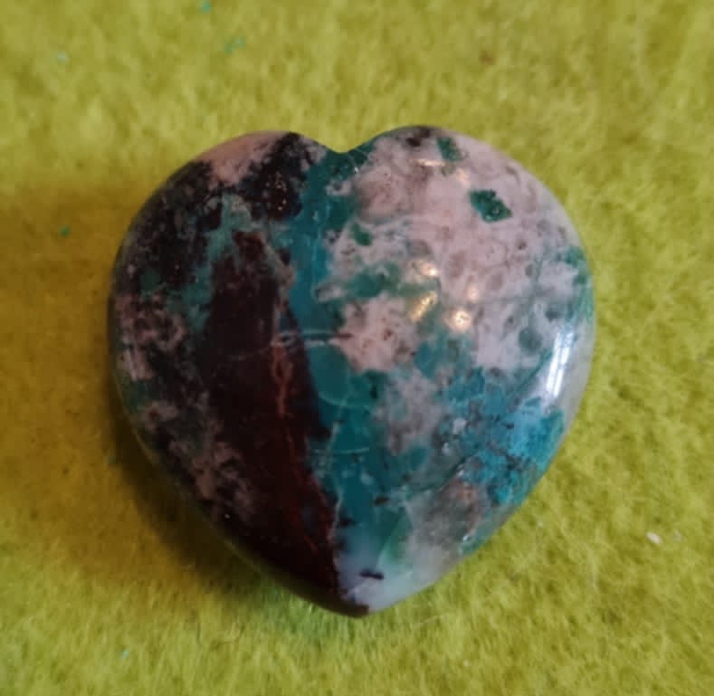 Naturaalne lihvitud poolvääriskivi krüsokolla – lihvitud süda.