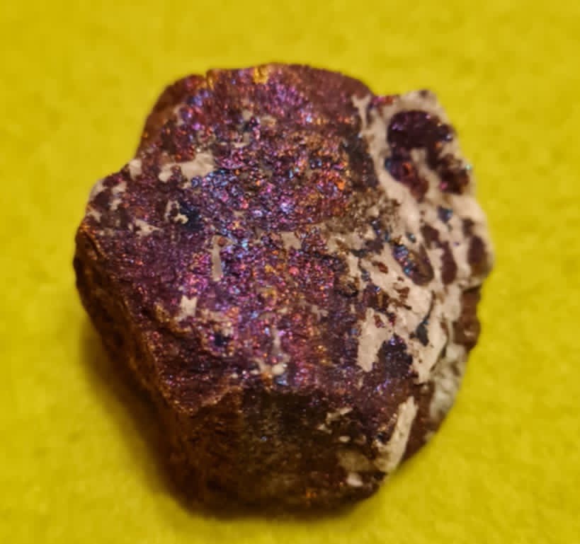 Naturaalne töötlemata tükk poolvääriskivi – paabulinnu maak e kalkopüriit e borniit.