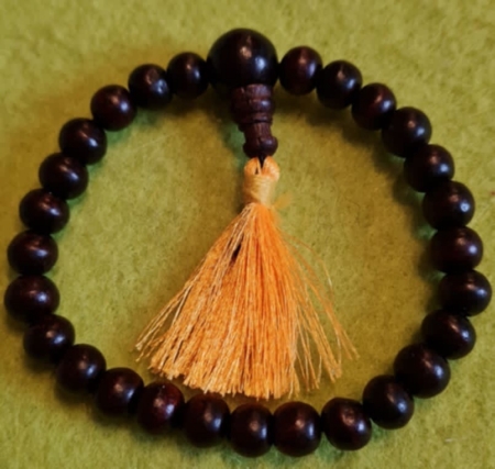 Pakkuda kaunis palvehelmed-käevõru – roosipuust – kollase tutiga.