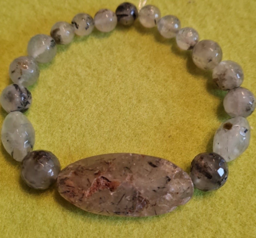 Naturaalne lihvitud poolvääriskivi preniit – kaunis veniv käevõu lihvitud helmestest.