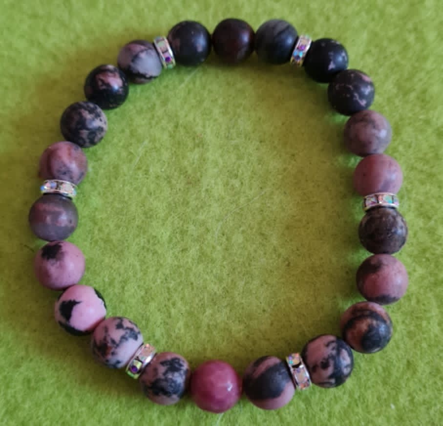 Naturaalne lihvitud poolvääriskivi rodoniit – veniv käevõru kaunitest helmestest!