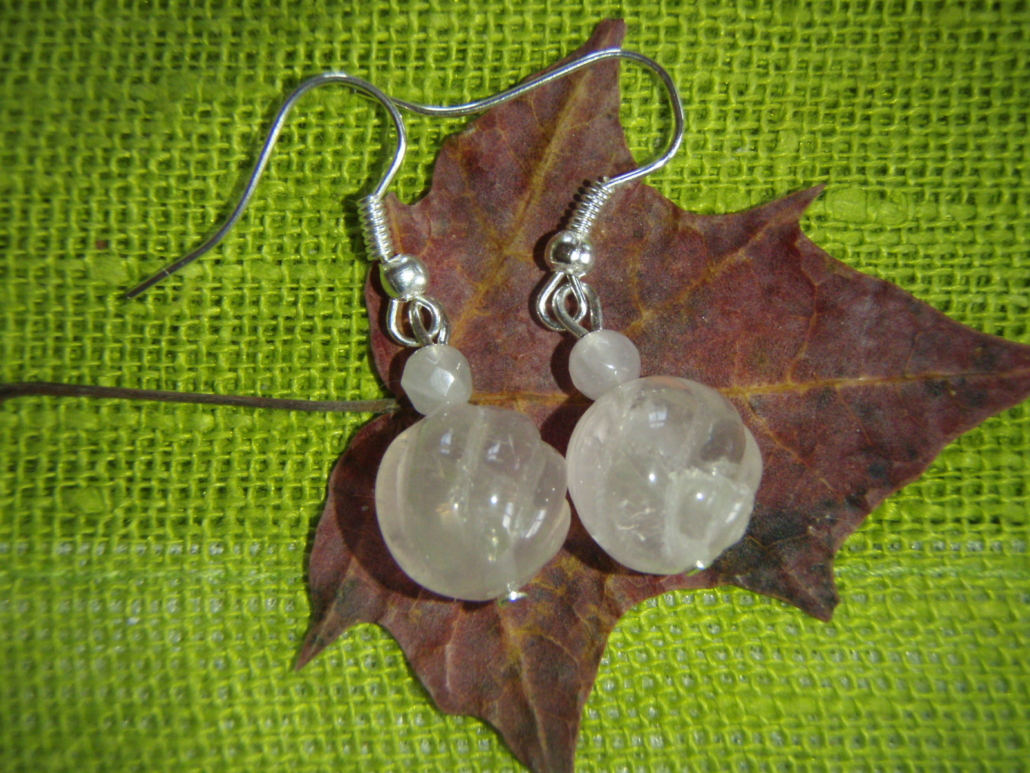 Naturaalsest poolvääriskivist roosa kvarts kaunid kõrvarõngad – nikerdatud kerad.