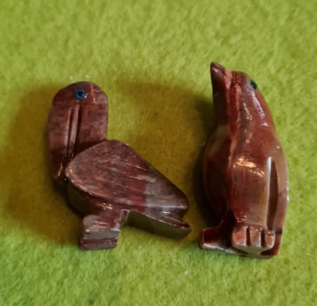 Naturaalne poolvääriskivi steatiit – soapstone inglise keeles – vahvad nikerdatud linnud. Erinevad – kõiki ainult 1 – alles pelikan ja pingviin. mõõdud ca 3-4 cm
