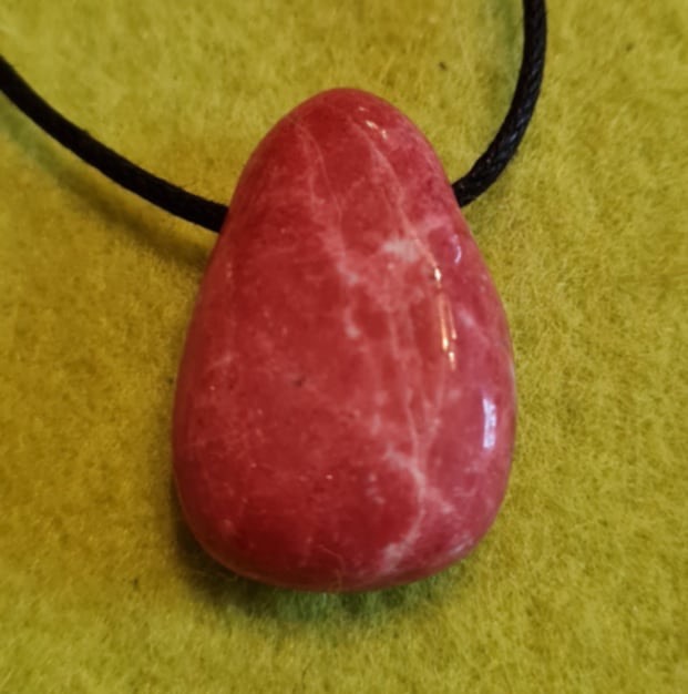 Naturaalne trummellihvitud poolvääriskivi thuliit – ripats vahanööriga.