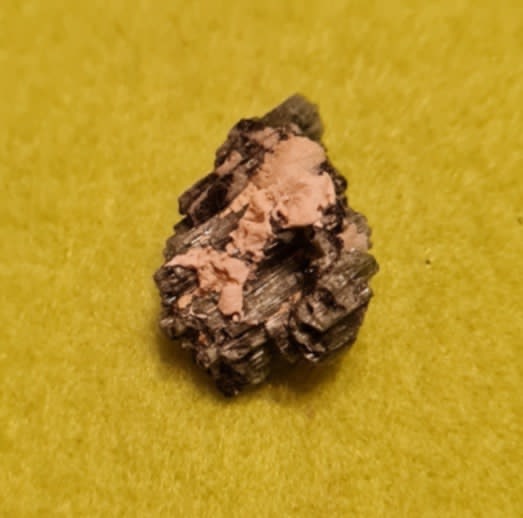 Naturaalne töötlemata tükk poolvääriskivi – sini-roheline turmaliin mustal turmaliinil.