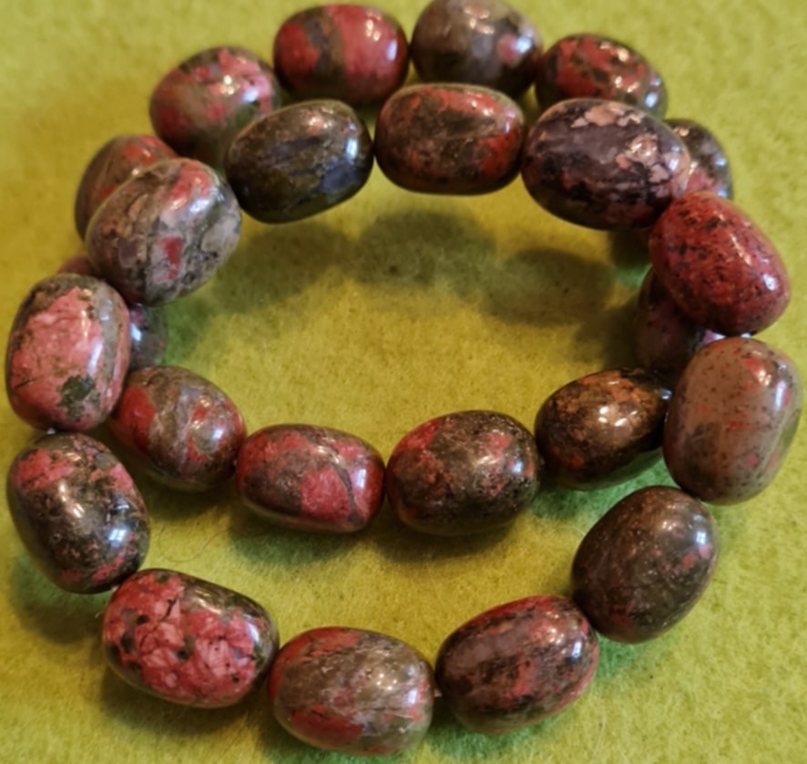 Naturaalne poolvääriskivi – unakiit – lihvitud helmestest veniv käevõru!