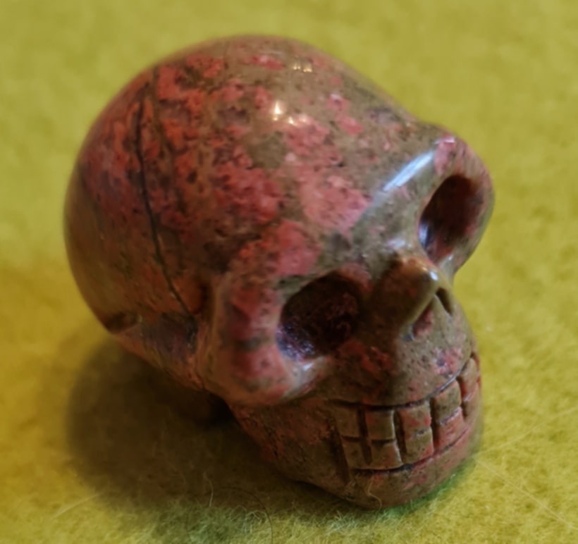 Naturaalne lihvitud poolvääriskivi unakiit – pealuu